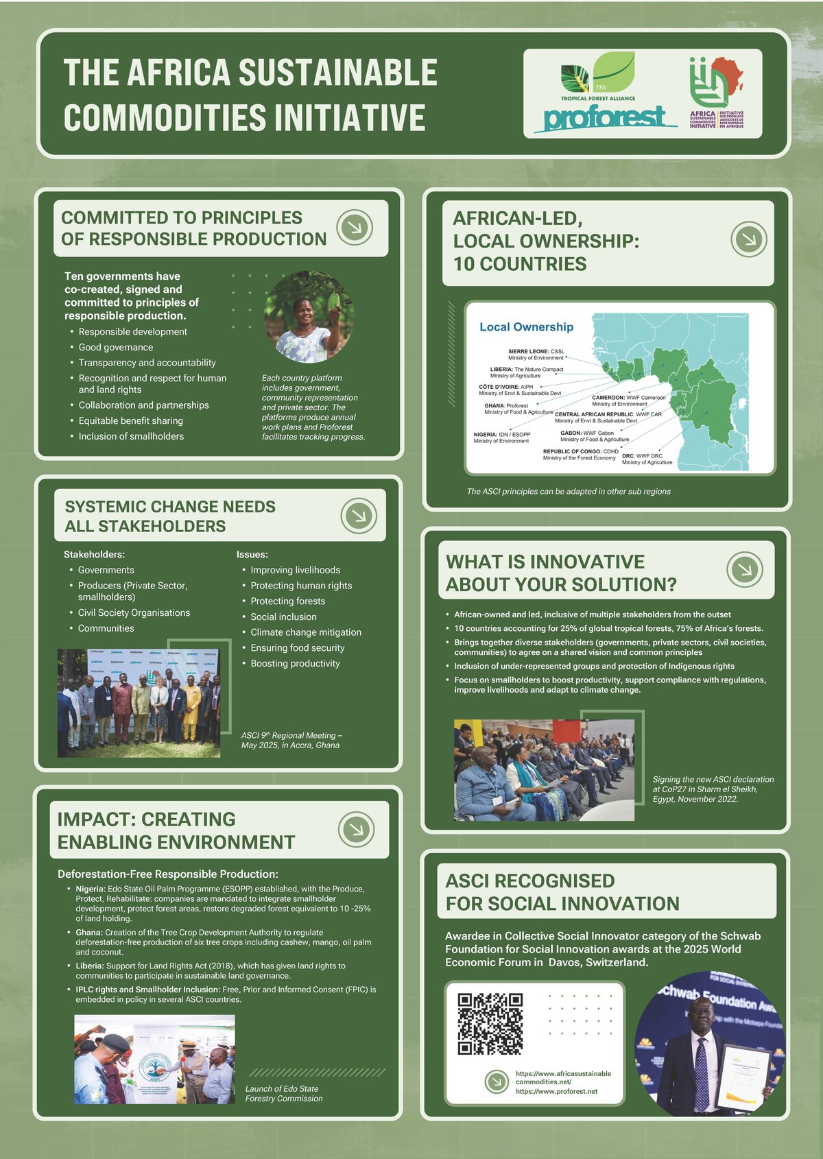 Launched in 2016 at COP22 in Marrakech, ASCI puts African producer countries at the forefront of shaping principles for responsible production of cocoa, coffee, rubber, palm oil and other high‑impact agricultural commodities. Initially known as the Africa Palm Oil Initiative, the Marrakech Declaration has since expanded into a cross‑commodity commitment endorsed by ten African governments. The initiative aims to harmonise Africa’s ambitious development goals with urgent environmental priorities to reduce deforestation, curb greenhouse gas emissions, restore degraded lands and strengthen land tenure and community rights.